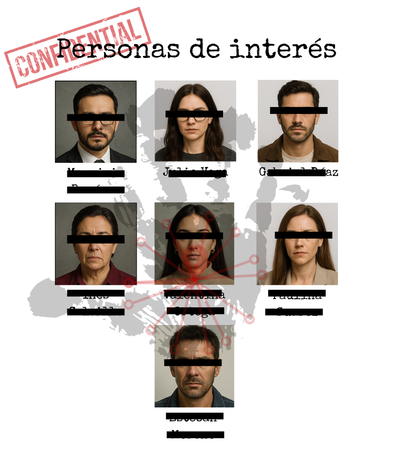 “Expediente digital con evidencias realistas: sigue el hilo rojo.”